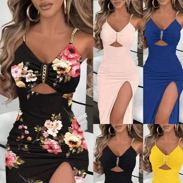 Women's Chain Shoulder Strap Split Sling Dress