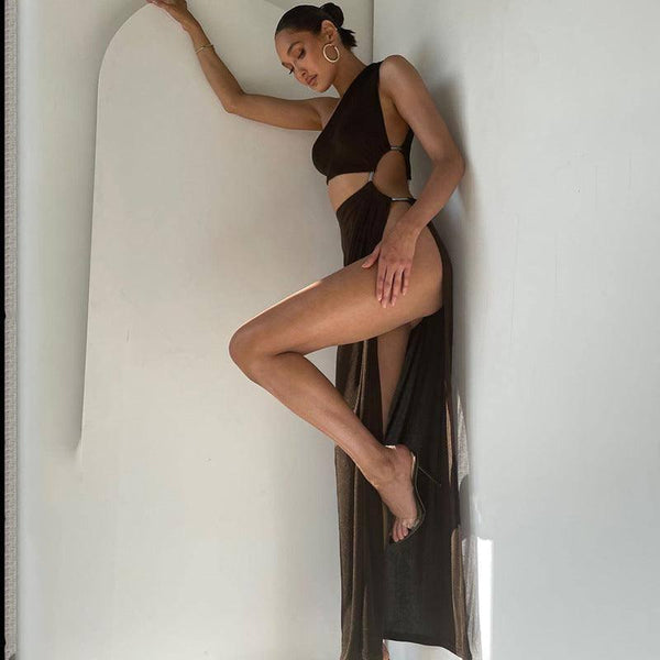 Women's Dignified Hollow Sloping Shoulder Dress