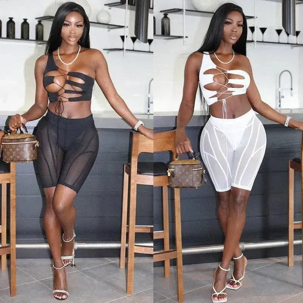 Product Description: Women's Fashion Skinny See-through Stitching Pants