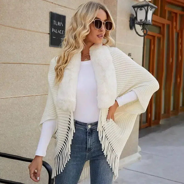 Women's Fur Collar Tassel Shawl Knitted