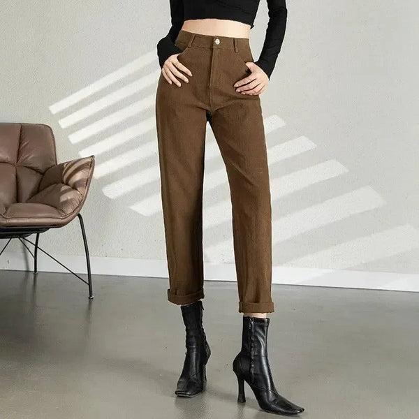 Women's High Waist Nine Minute Straight Turnip Tube Pants
